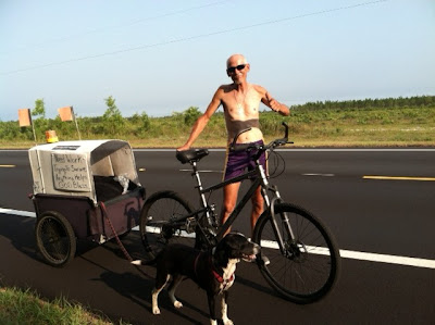 I gave him a twenty and the bag of almonds and his eyes registered the cash, but it was the almonds he raised like a bag of gold. When you are still five miles from supper on a country road a $20 won’t get you too far. He said he got divorced 11 months ago and he didn’t know what to do with himself, so he just got on his bike. That was in Texas, and he was in the Florida Panhandle by way of Virginia Beach. “I’ve been doing this a minute” he said, when I asked if he wanted my half-bottle of water. “Got 5 jugs in the trailer.”